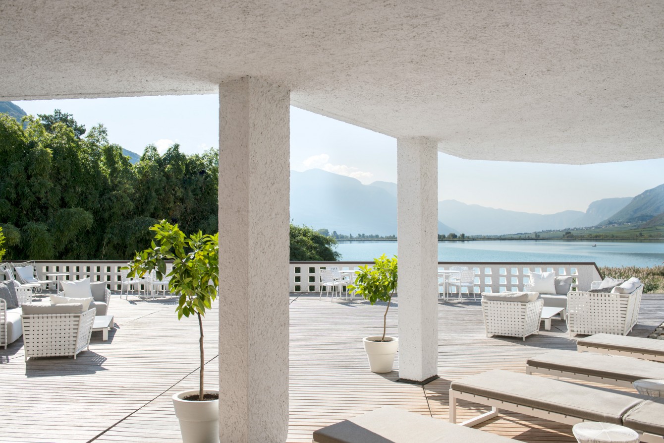 Möglich macht das eine Architektur, die sich Raum nimmt und Form gibt, die Grenzen zwischen Innen und Außen verschwimmen lässt, die Naturschauspiel spiegelt genauso wie Kultur. Und möglich machen das auch liebevoll ausgesuchte Designerstücke, die mitgestalten, ohne Mensch oder Natur die Show zu stehlen. So findet Wohnen zur ursprünglichen Bedeutung: sich geborgen fühlen und zugleich frei… in einem modernen Refugium und Gesamtkunstwerk, einem Hotel am Nordufer des Kalterer Sees.