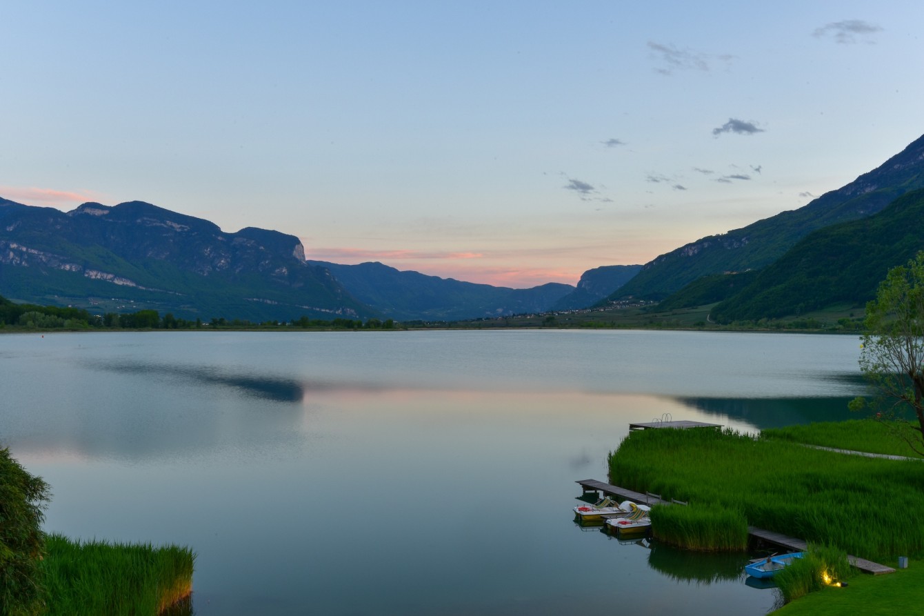 Wer hier wohnt, tritt unweigerlich in Beziehung zum Naturreich. Die Nutzung als Badesee, die Stege durch das Schilf … sie zeigen, dass der Mensch hier zu Hause ist. Trotzdem bleibt das größte und wärmste Naturgewässer Südtirols ein wichtiger Lebensraum für Vögel und Lurche. Selbst Zugvögel schätzen Feuchtwiesen, Moore und Schilfgürtel als Rastplätze und finden hier einen reich gedeckten Futter-Tisch vor. Darum ist die Uferzone unter Schutz gestellt: ihr Schilfbestand, der Auwald und der submediterrane Buschwald. Wer diesen Artenreichtum beobachtend oder wandernd erleben will, dem bieten sich vielfältige Möglichkeiten. Die See-Umrundung dauert knappe zwei Gehstunden.